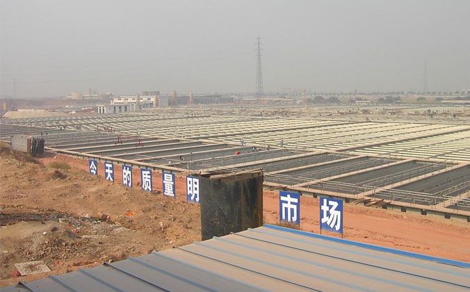工程建設擬分兩期進(jìn)行,一期日處理污水量為260萬(wàn)噸,占地280畝,投資4.34億元,于2003年3月破土動(dòng)工,2004年3月底進(jìn)行正式投藥試運行。一期工程裝有1萬(wàn)伏、710千瓦提升水泵5臺(4用1備),每天抽水量260萬(wàn)噸;設有60個(gè)長(cháng)115米、寬8米的沉淀池,分南北兩區均布;設有4個(gè)直徑35米的污泥濃縮池;設有39臺套設備的供藥車(chē)間;設有污泥脫水的10臺3米帶寬的帶式壓濾機和3臺D5LL型的離心脫水機,日處理干污泥量260噸。東莞運河于2004年10月與市內原來(lái)流入東江的寒溪河、石馬河連通后,日流量達400余萬(wàn)噸,成為市內最大的一條納污河。凈化廠(chǎng)在東城區下橋村開(kāi)始攔截運河水,將又黑又臭的生活和工業(yè)污水引入廠(chǎng)區進(jìn)行化學(xué)一級強化處理,主要通過(guò)投放PAFC、PAM藥劑使水中懸浮物、色素、有機污染物等被絮凝去除,然后再將處理后的清水重新流入運河。凈化廠(chǎng)的建成投產(chǎn),大大地改變了東莞運河又黑又臭的狀況。