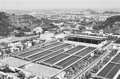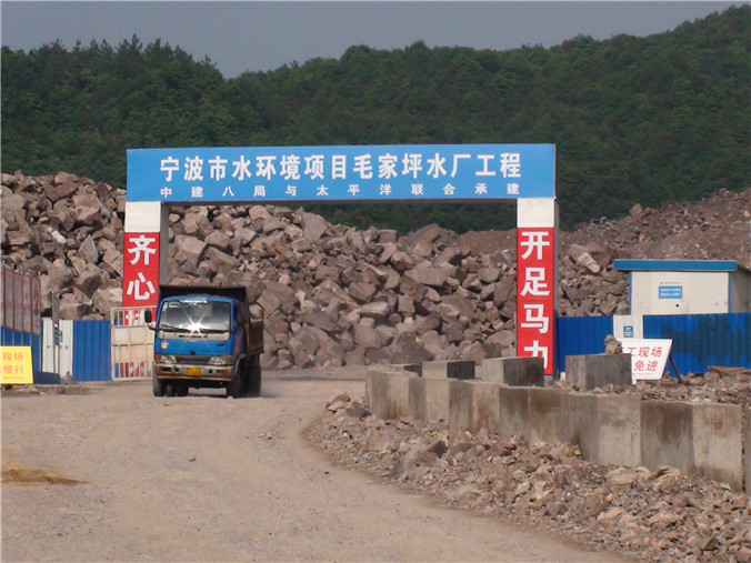 毛家坪水廠(chǎng)工程是寧波市水環(huán)境項目寧波供水子項4大部分中的第2部分,建設內容為新建50萬(wàn)立方米/日的重力式高位凈水廠(chǎng)。水廠(chǎng)位于鄞州區鄞江鎮梅園村,整個(gè)水廠(chǎng)總平面位于標高52m和標高38m的兩個(gè)臺階上,沉淀池、濾池、清水池及反沖洗泵房等主體處理構筑物位于52m標高,其余輔助生產(chǎn)和生活設施,包括原水提升泵房、綜合加藥間、污泥脫水車(chē)間、反沖洗廢水調節池、機修車(chē)間和綜合樓均位于38m標高。整個(gè)水廠(chǎng)占地240畝,采用強化混凝-平流沉淀-砂過(guò)濾的加強常規處理工藝,預留深度處理用地。